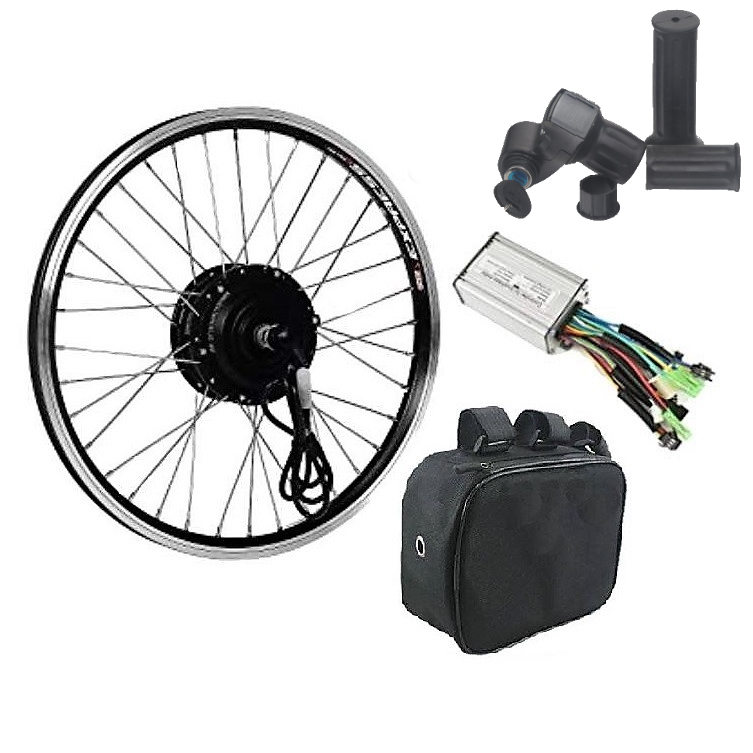 Переоборудование обычного велосипеда в электро выполняется с использованием специального комплекта деталей. В его состав входят: